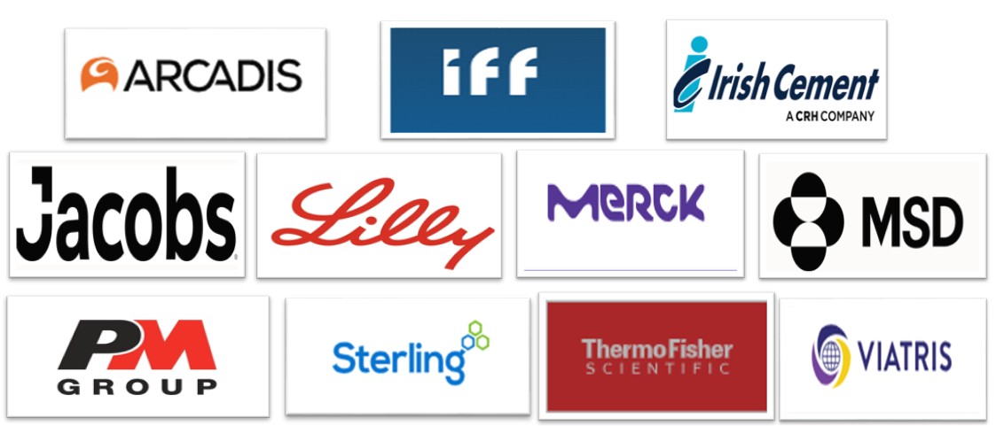 Arcadis, Eli Lilly, Irish Cement, International Flavors and Fragrances, Jacobs Engineering, Merck Group, MSD, PM Group, Sterling Pharma, Thermo Fischer, Viatris.